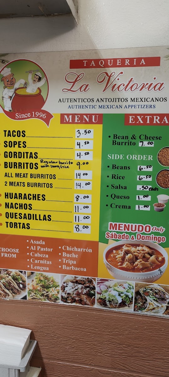 While some customers note the dishes can be a tad greasy, the satisfaction of each bite is undeniable. Whether you're dining in or taking out, La Victoria Taqueria promises a flavorful experience that keeps you coming back for more. Don’t miss out on this gem where great taste and authenticity come together!
